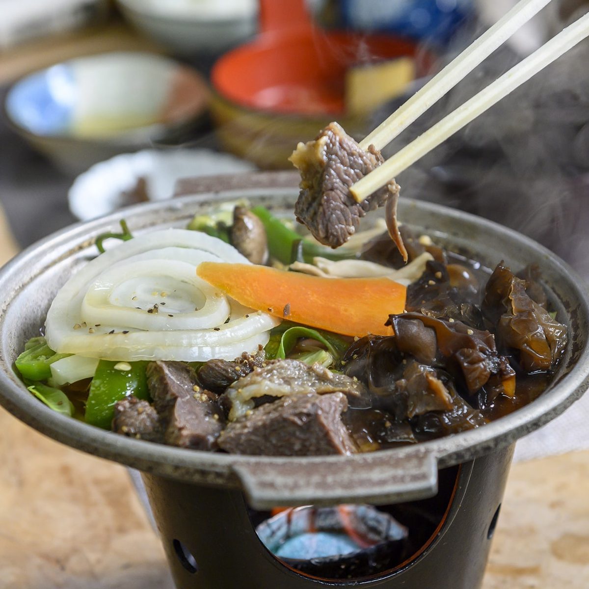 その歴史から今でも当地ではジビエをよく食べます。当館のお食事にもイノシシやシカ等のジビエを使用しております。当館が仕入れるお肉を取り扱うのは、きちんと保健所の許可がある栄村のジビエの解体施設。